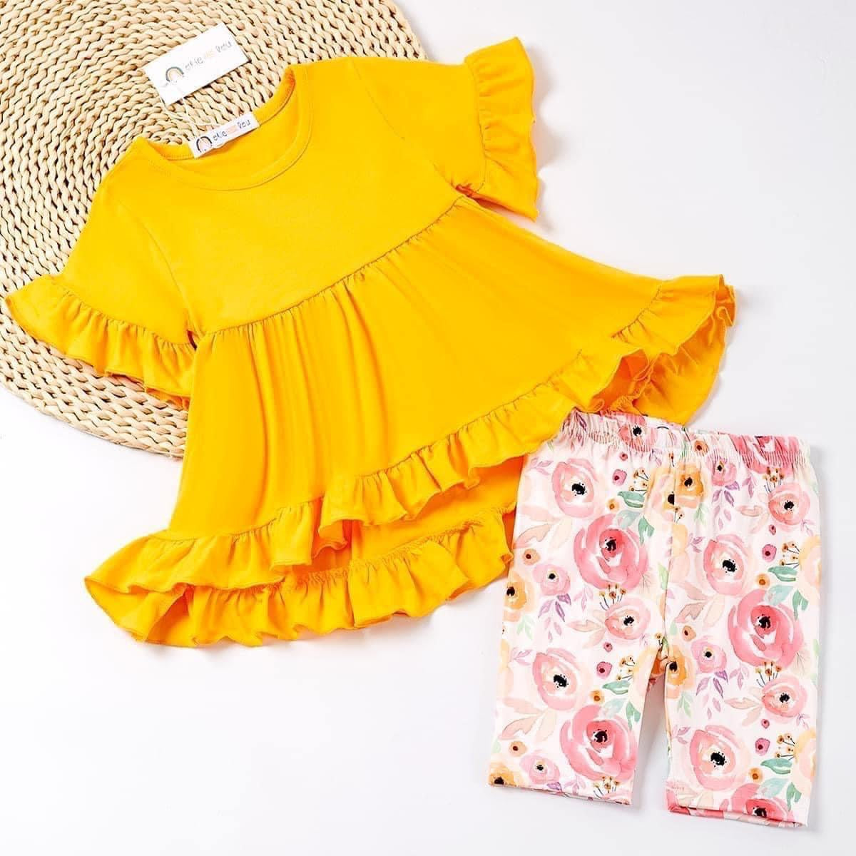 Keep your little girl sweet and sunshine-y in this Bright and Sunny Two piece set! Featuring a bright yellow top and floral printed shorts, this set will make a style statement! Perfect for adding a ray of sunshine to any look, it’s sure to bring a smile to your (and her!) face!
