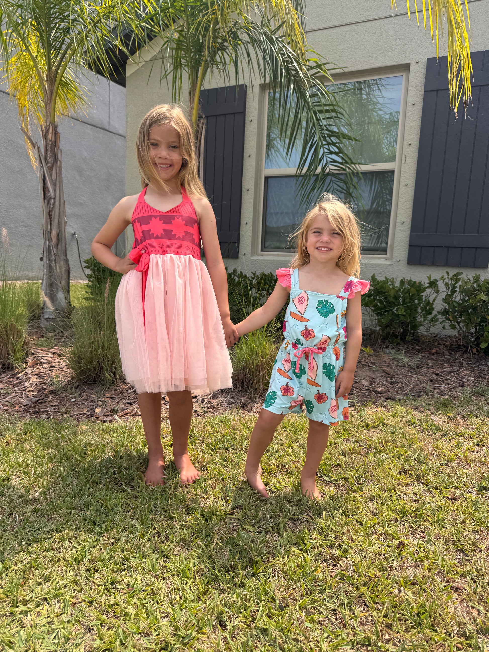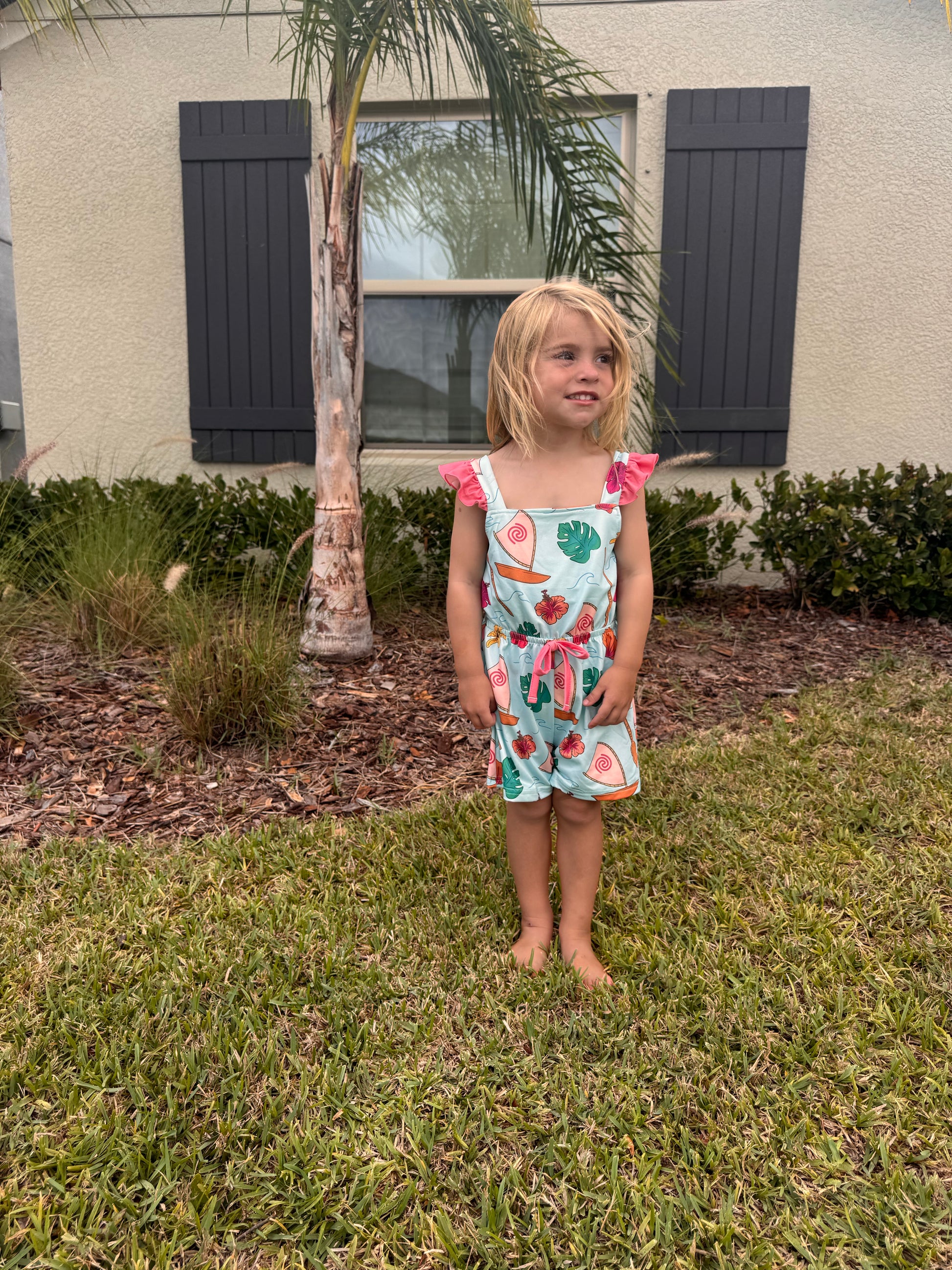 Dive into adventure with our Island Princess Jumpsuit! This playful Moana-inspired outfit features charming ruffle accent shoulder straps that add a touch of island flair. The convenient button-down back makes dressing up a breeze. Perfect for little explorers ready to embark on their own ocean journey or backyard adventures!