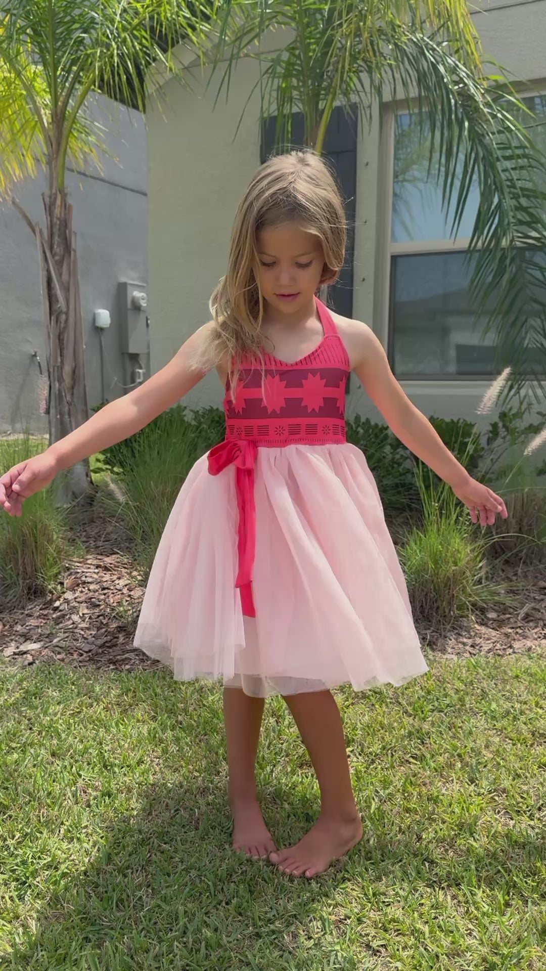 Transform your little one into an island princess with this enchanting Moana-inspired dress! The vibrant red Hawaiian print bodice captures the spirit of adventure, while the light pink tulle skirt adds a magical, twirl-worthy flair. Perfect for birthday parties, playdates, or anytime your child wants to embark on their own oceanic journey. This playful dress combines comfort with imagination for endless tropical fun!