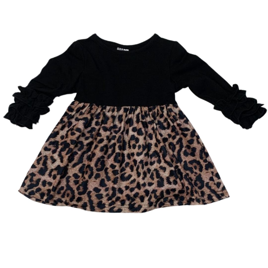 Get ready to roar in style with our Leopard Luxe Dress! Featuring a fierce black top and a playful leopard print skirt with ruffled sleeves, this dress is perfect for making a statement. Show off your wild side and turn heads wherever you go.