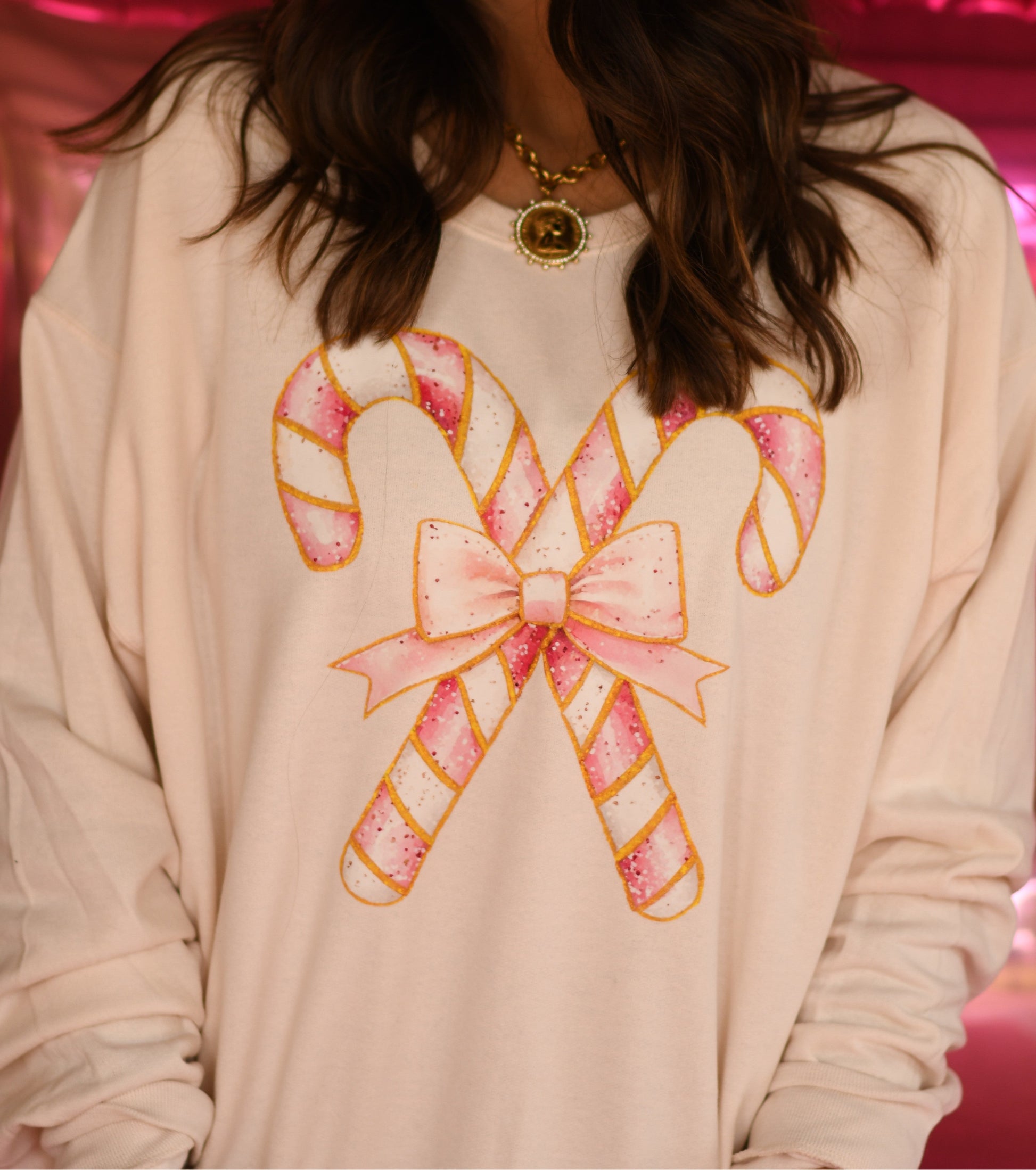 Pink Candy Cane Bow Sweatshirt/Tee