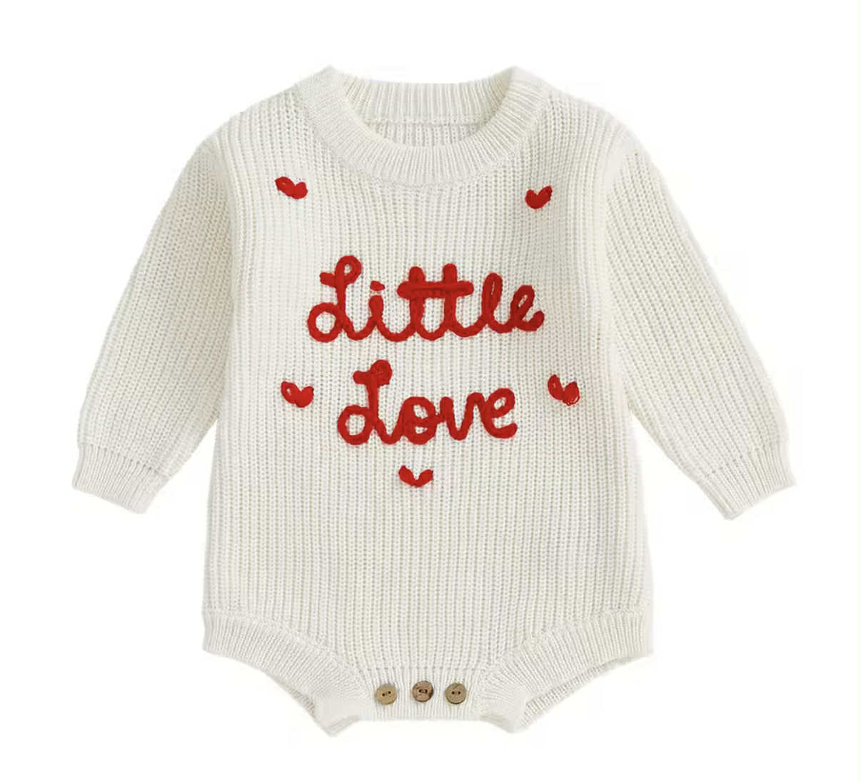 Snuggle up in pure comfort with this adorable cotton knit onesie! Featuring a sweet "Little Love" design with tiny hearts scattered across the front, this cozy piece is perfect for the littlest dreamers. The convenient 3-button bottom makes diaper changes a breeze, while long sleeves keep tiny arms warm and toasty. Available in 8 vibrant colors and 4 sizes, there's a perfect fit for every baby. Soft, sweet, and oh-so-snuggly—this is the onesie your little one will live in!