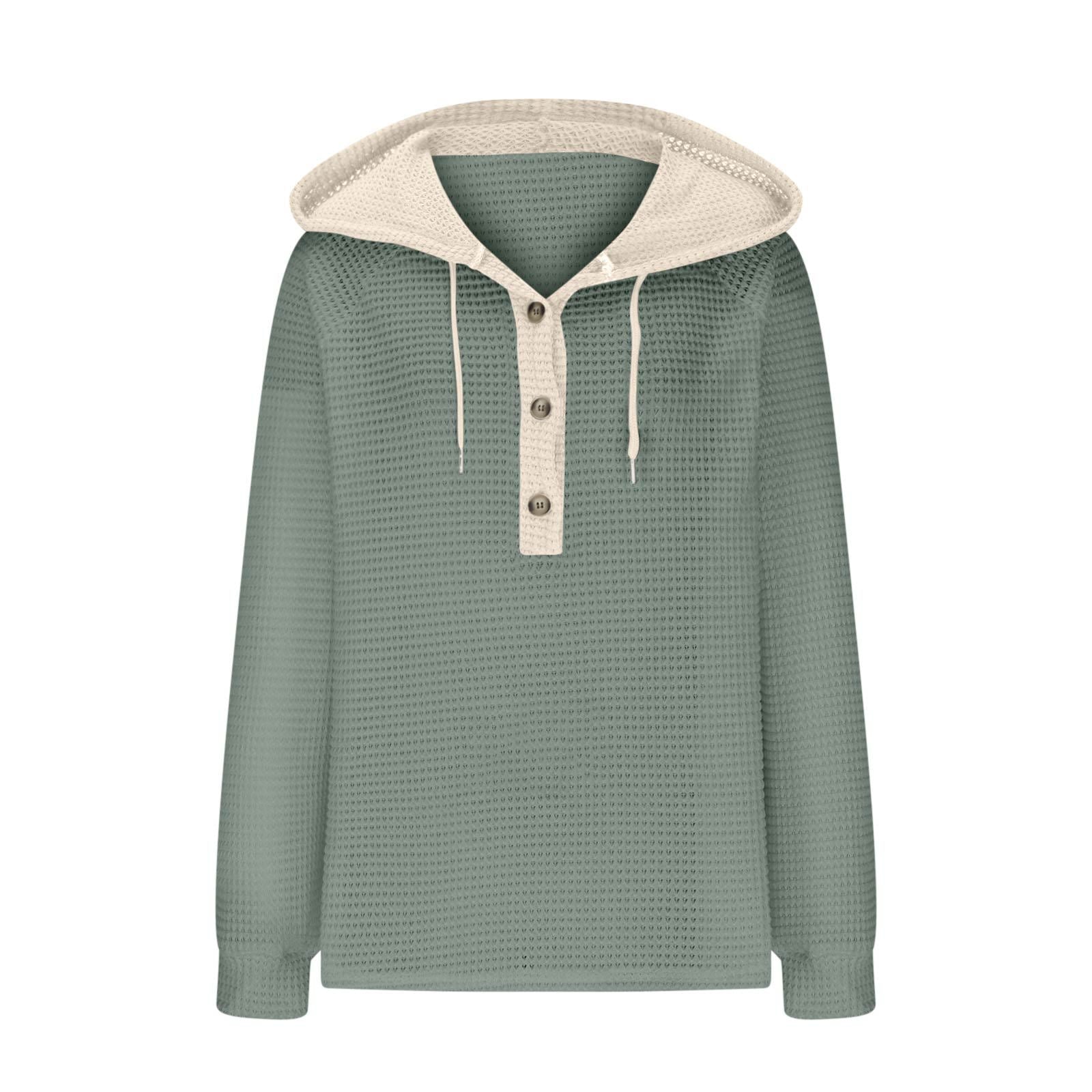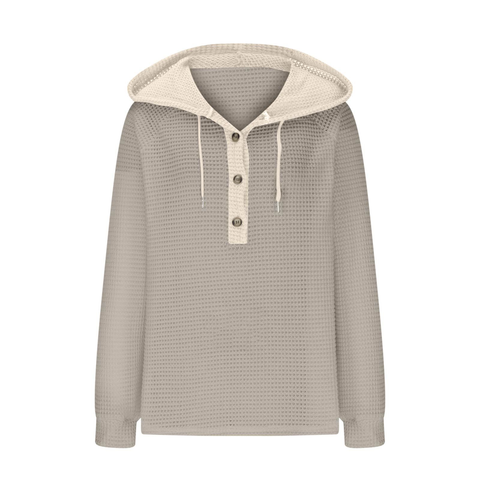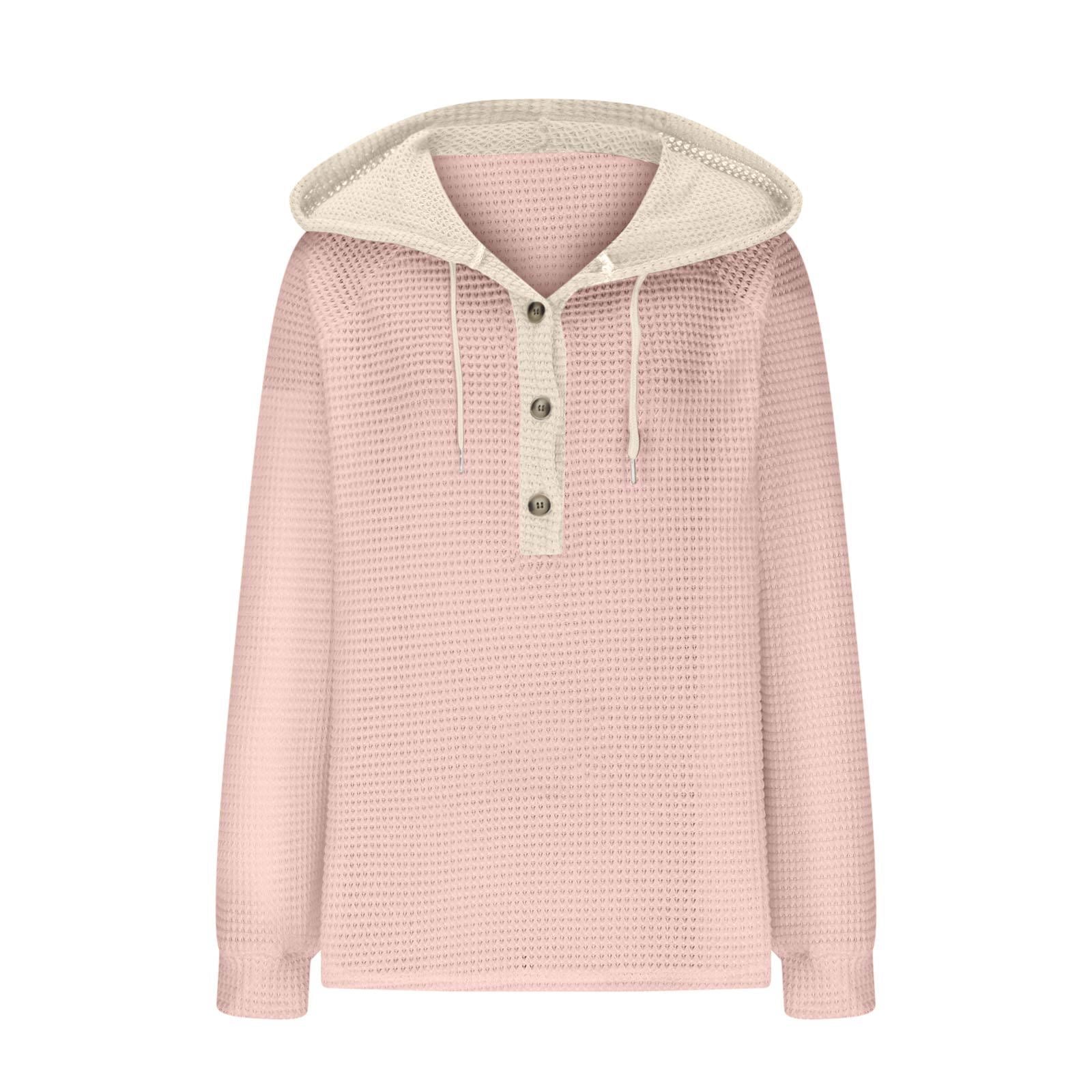 Stay cozy and cute in the Payton Waffle Henley! This long-sleeve women's top features a waffle knit, a hood with playful ties, and a flirty 3-button front. Available in 7 cheerful colors and 6 sizes, it’s perfect for layering or lounging with style. Snag yours for cooler days ahead!