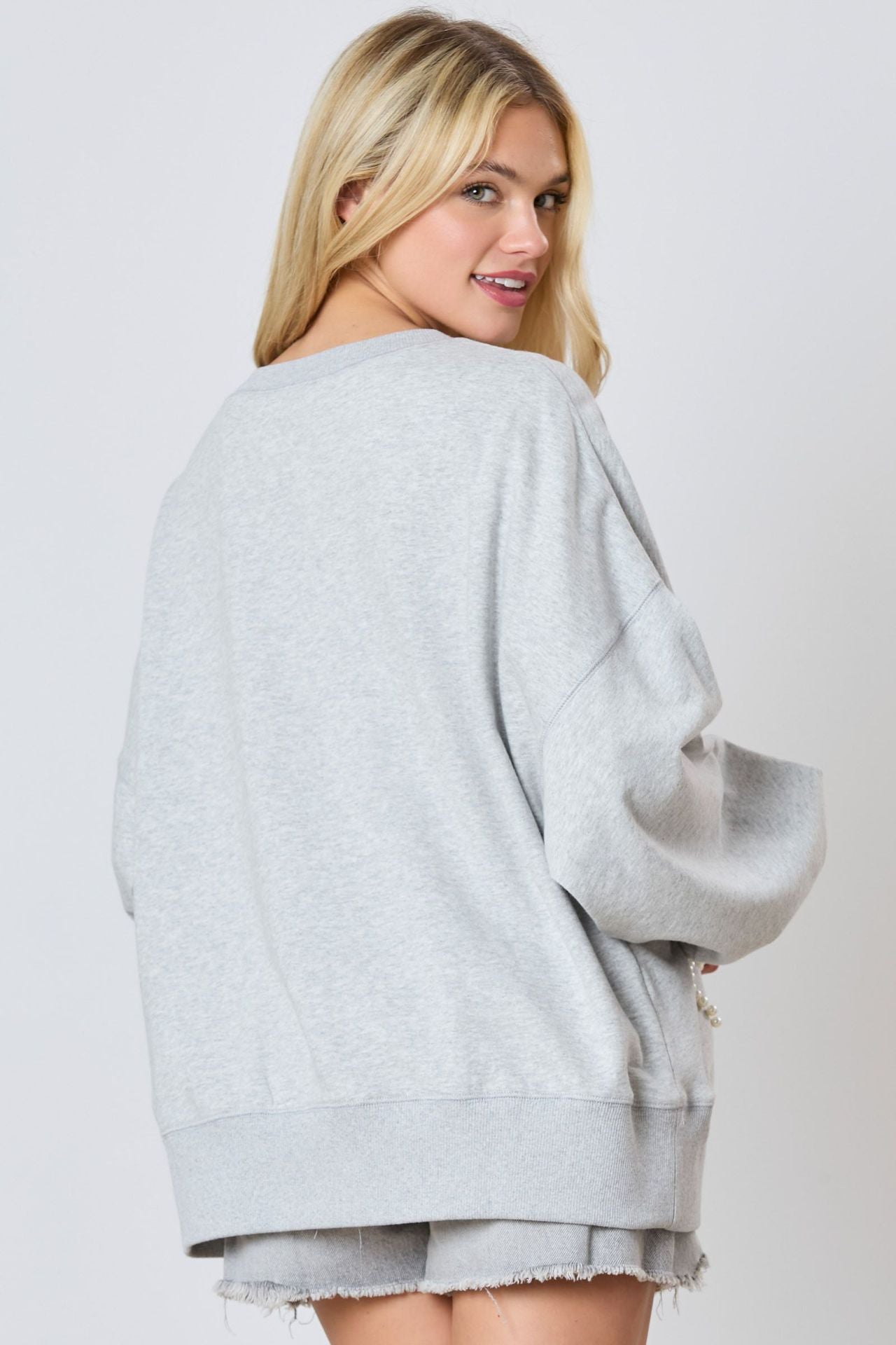 This crew neck is all about the details! Featuring charming pearl bows scattered across the front, it's the perfect blend of playful and polished. Choose from three beautiful colors to match your vibe and personality. The lustrous pearl accents add a touch of sophistication that elevates any casual look, whether you're running errands or hanging with friends. It's the kind of piece that makes you smile every time you put it on.