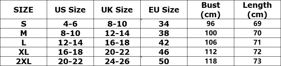 Sizes: S, M, L, XL, 2XL