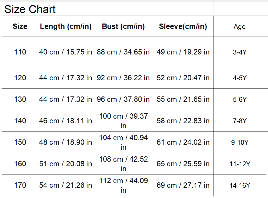 Sizes: 3-4T, 4-5T, 5-6T, 7-8, 9-10, 11-12, 14-16