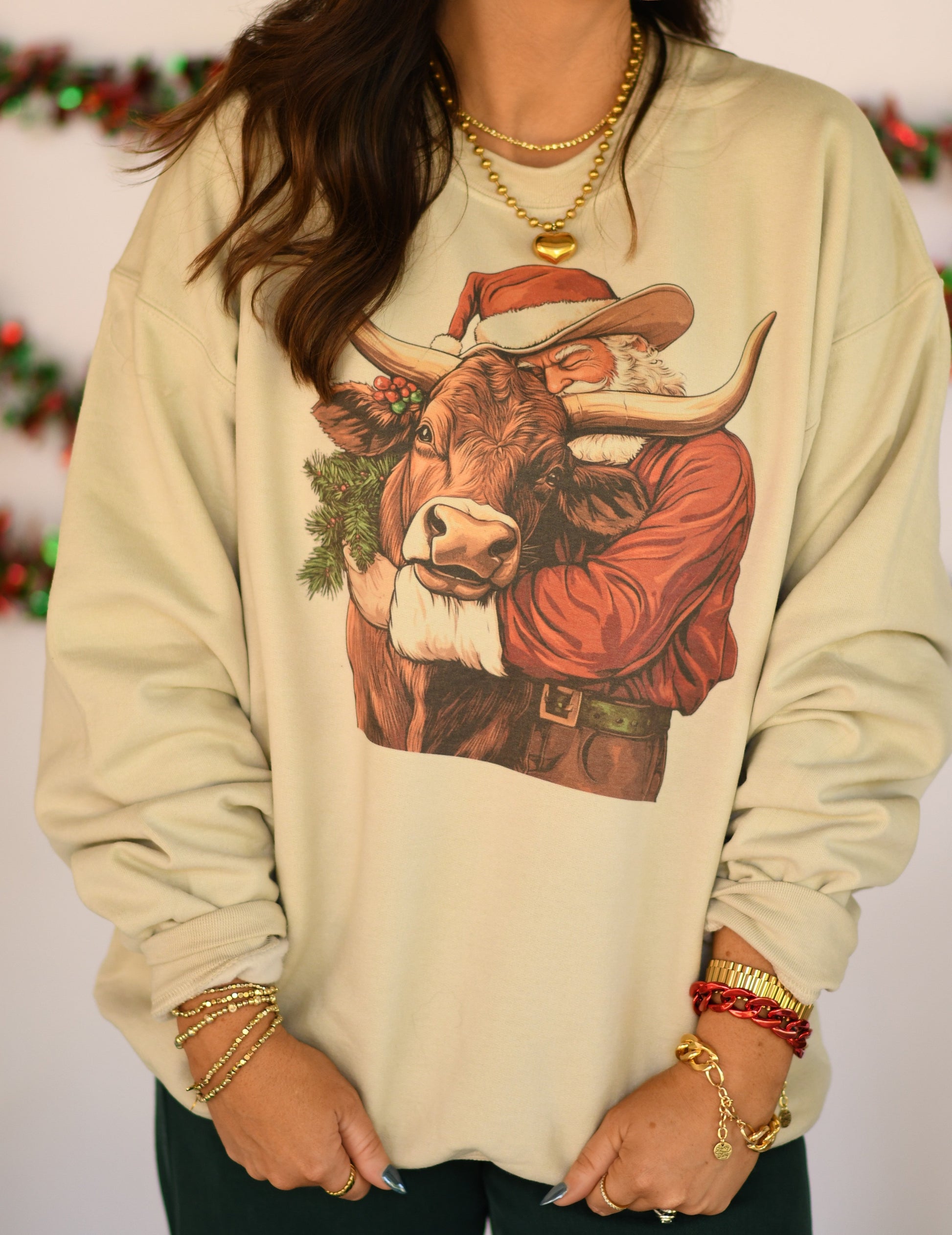 Santa Hugging Bull Sweatshirt
