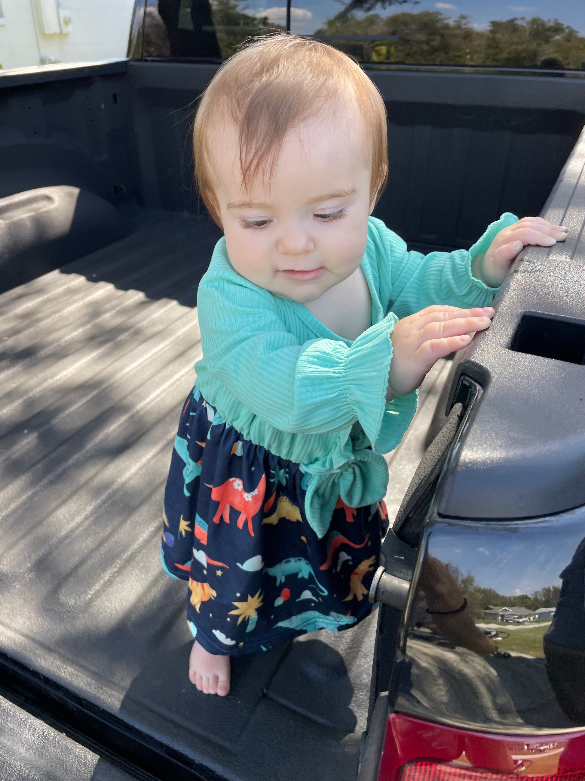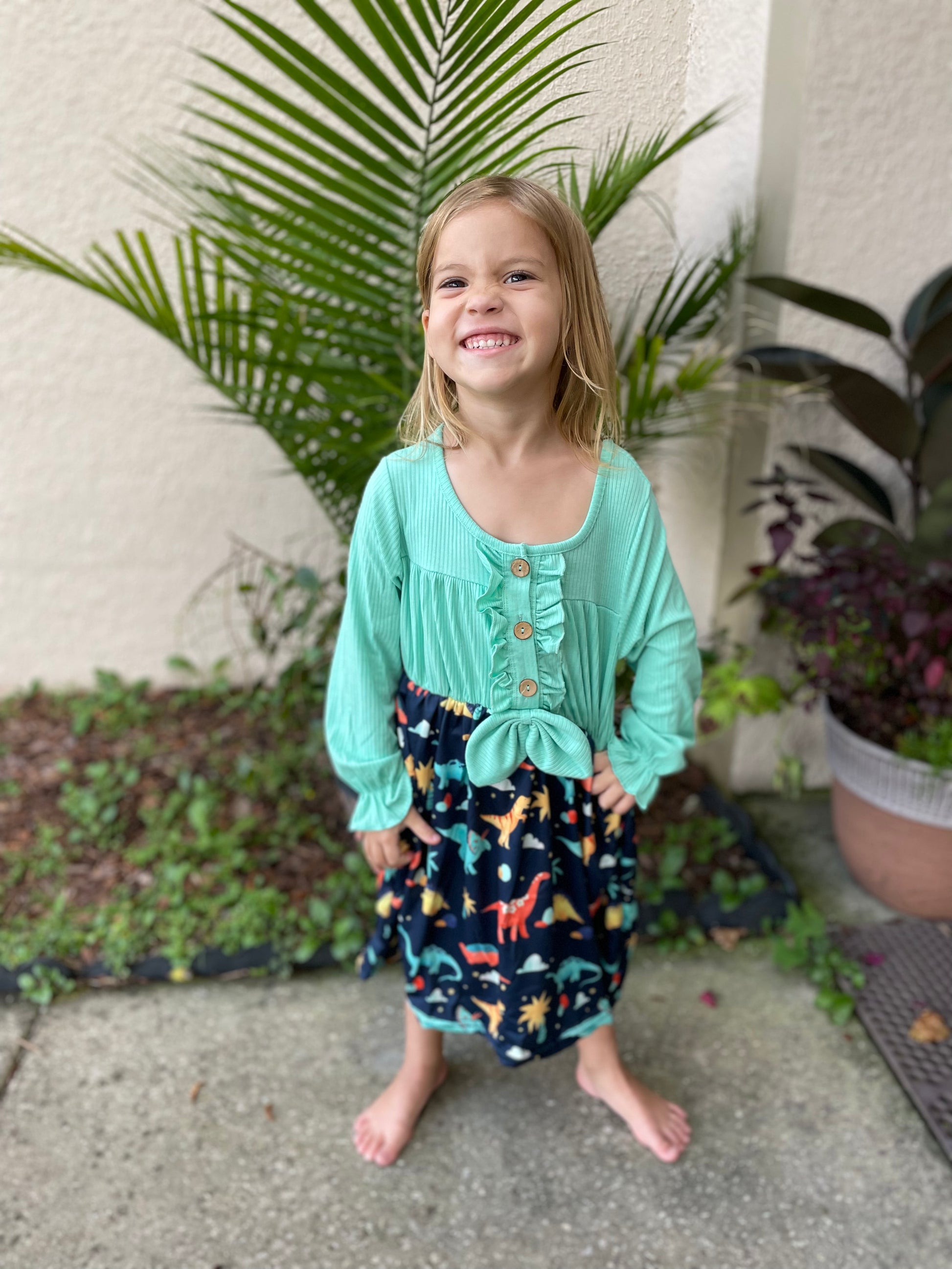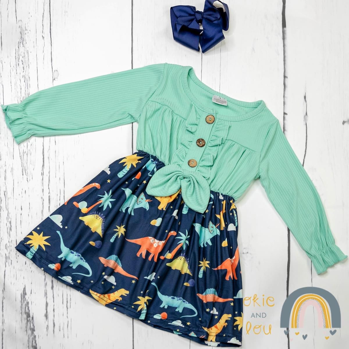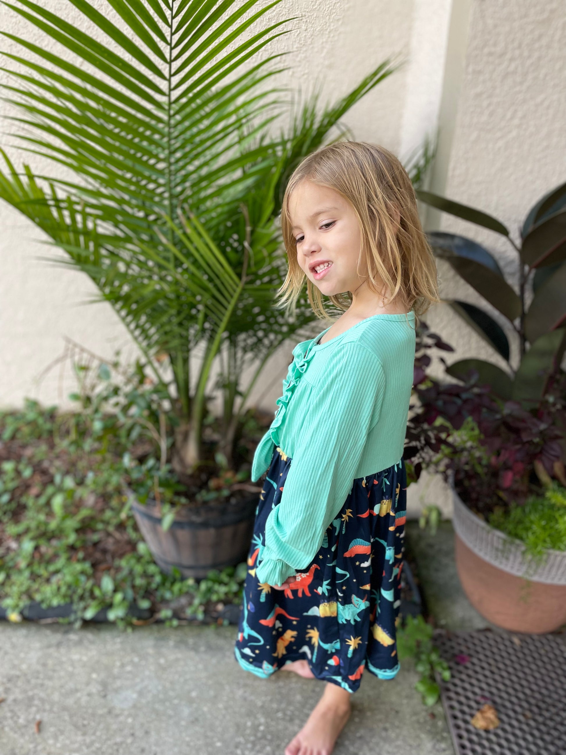 A fun print and a swingy skirt makes this a great addition to your dinosaur lover's wardrobe.